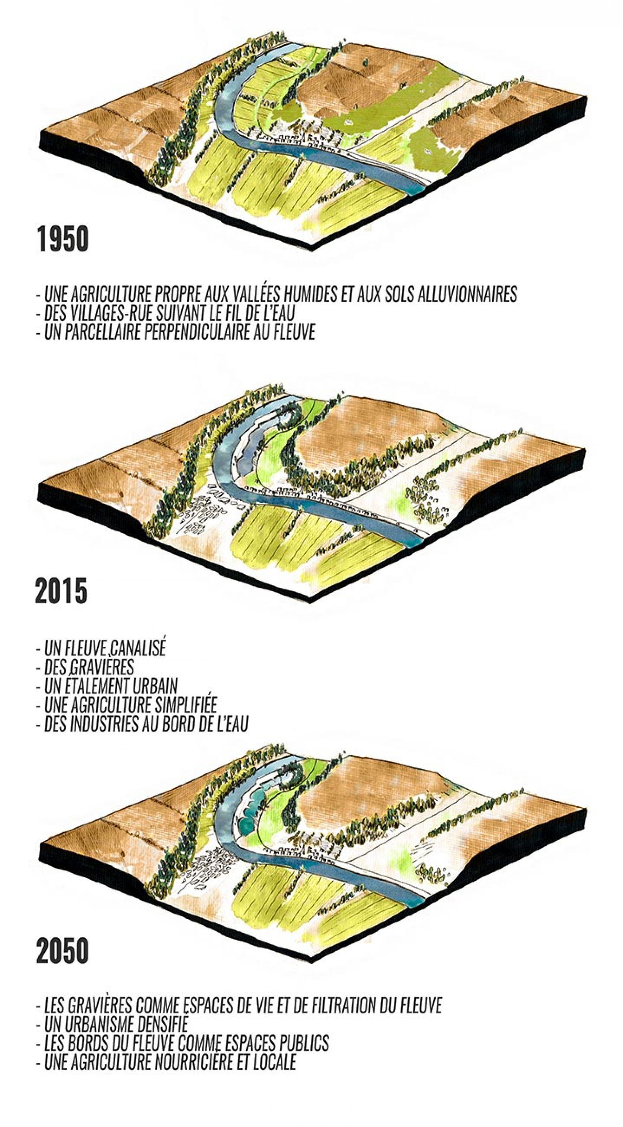 Quels espaces sommes nous réellement prêts à partager avec la Seine ? De quelle manière ? Comment la géographie d’un grand fleuve peut demeurer une source d’inspiration pour nos villes ? En quoi le paysage peut-il être la condition d’une cohabitation durable avec le fleuve ?