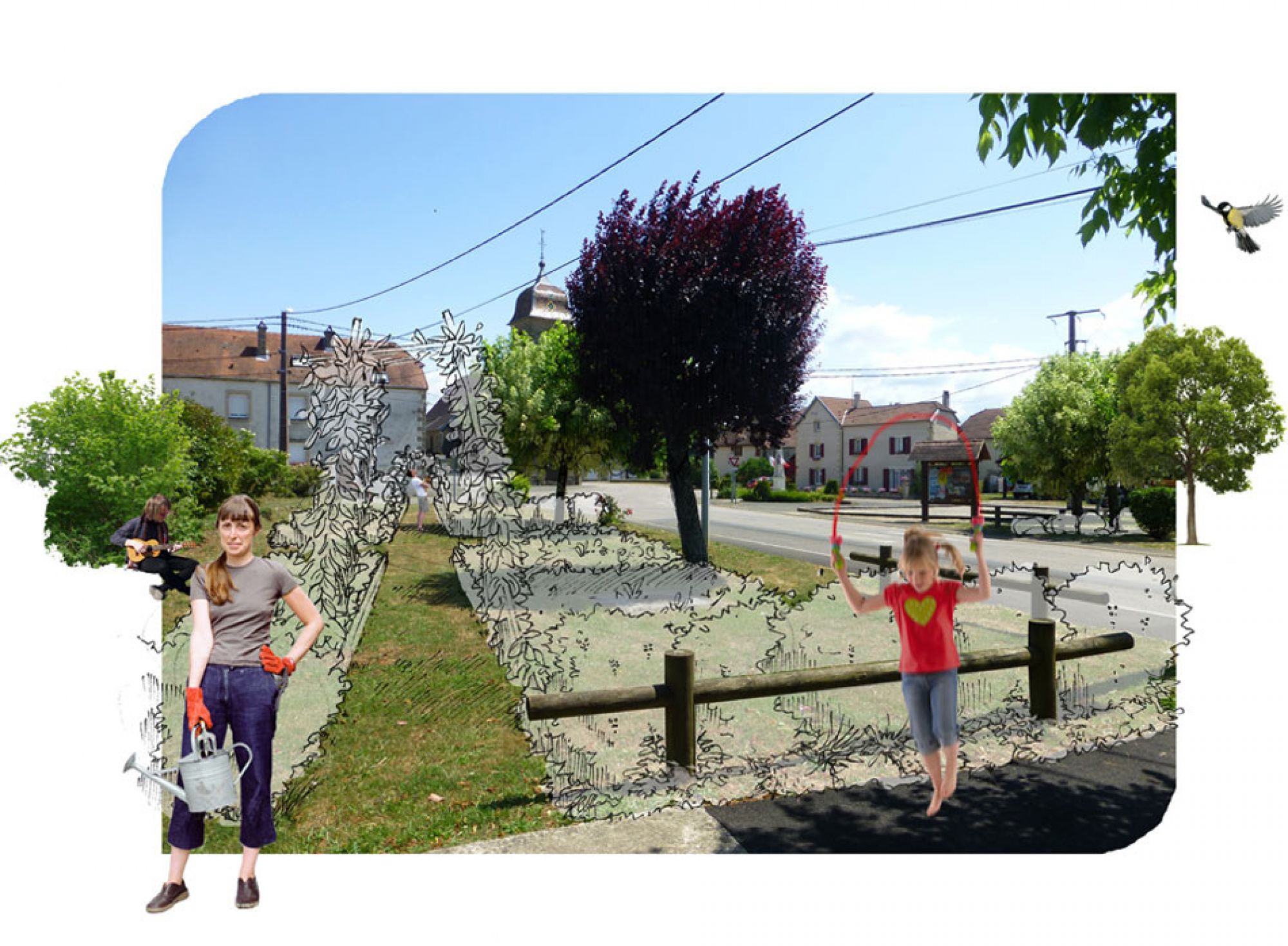Situé en Haute-Loire, cette commune a fait confiance à l’Atelier Mycélium et à Urban & Sens pour l’accompagner dans sa conversion écologique. Aux côtés d’une équipe municipale extrêmement motivée, nous avons proposés un projet à l’échelle du centre bourg.